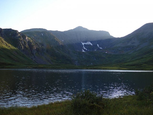 На севере хребет делает крутой поворот к востоку и череа 15 км почти стеной обрывается к озеро Телецкое.