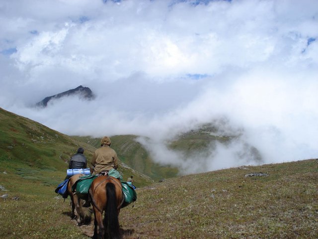 Хребет Иолго покрыт черневой тайгой почти на всем протяжении, кроме небольшой гольцовой зоны. Все крупные реки соединены тропами.