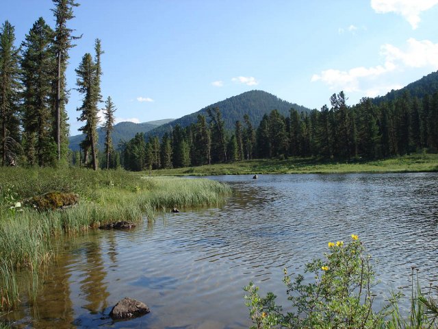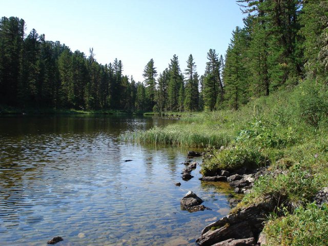 Неповторимо по красоте Телецкое озеро. Длина его 77,7 км, средняя ширина 3,2 км. Высокие и крутые берега его часто почти отвесно уходят в воду, образуя огромную впадину, емкостью 40 куб. километров. По максимальной глубине (325 м) озеро занимает пятое место в стране, по чистоте и прозрачности воды не уступает Байкалу. Давно и заслуженно озеро зовут жемчужиной Сибири.