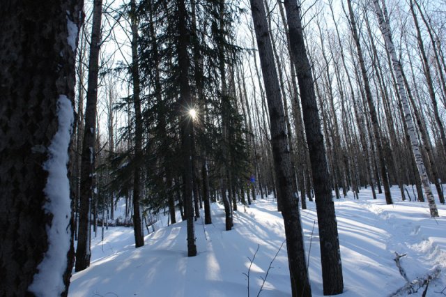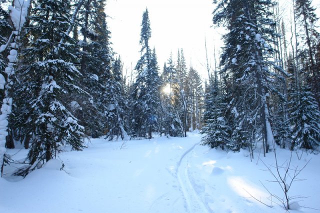 Зимой тайга похожа на сказку. Стройные пихты покрыты искрящимся пушистым снегом. В такое время кажется, что в тайге всё уснуло. Но и в эту суровую пору многие животные активны. Белки и клесты ловко вышелушивают семена из шишек хвойных деревьев. Сосна дает пищу и самым крупным таежным птицам – глухарям. Всю зиму они питаются сосновой хвоёй. Сова бородатая неясыть ловит неосторожных мышей, которые вышли по своим делам из-под снега. Рысь предпочитает зайцев, но поймать их не всегда удается. Встречаются на Салаире и волки.