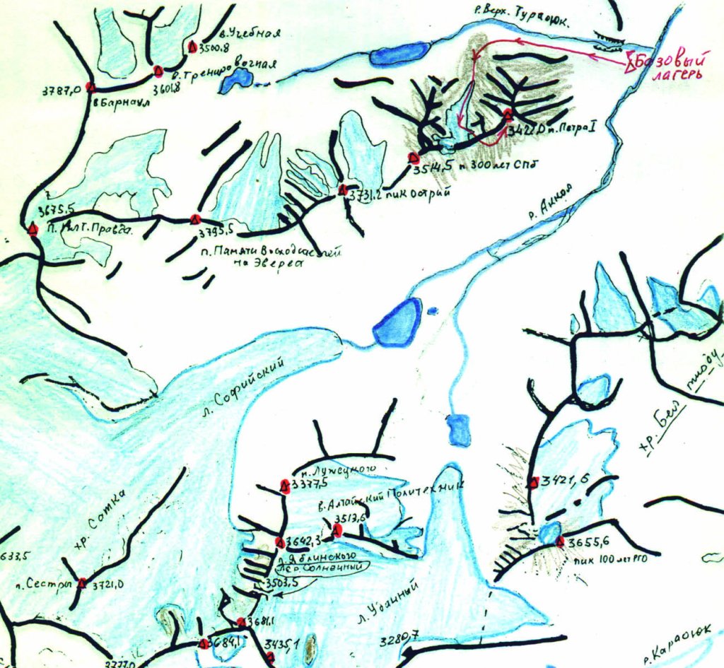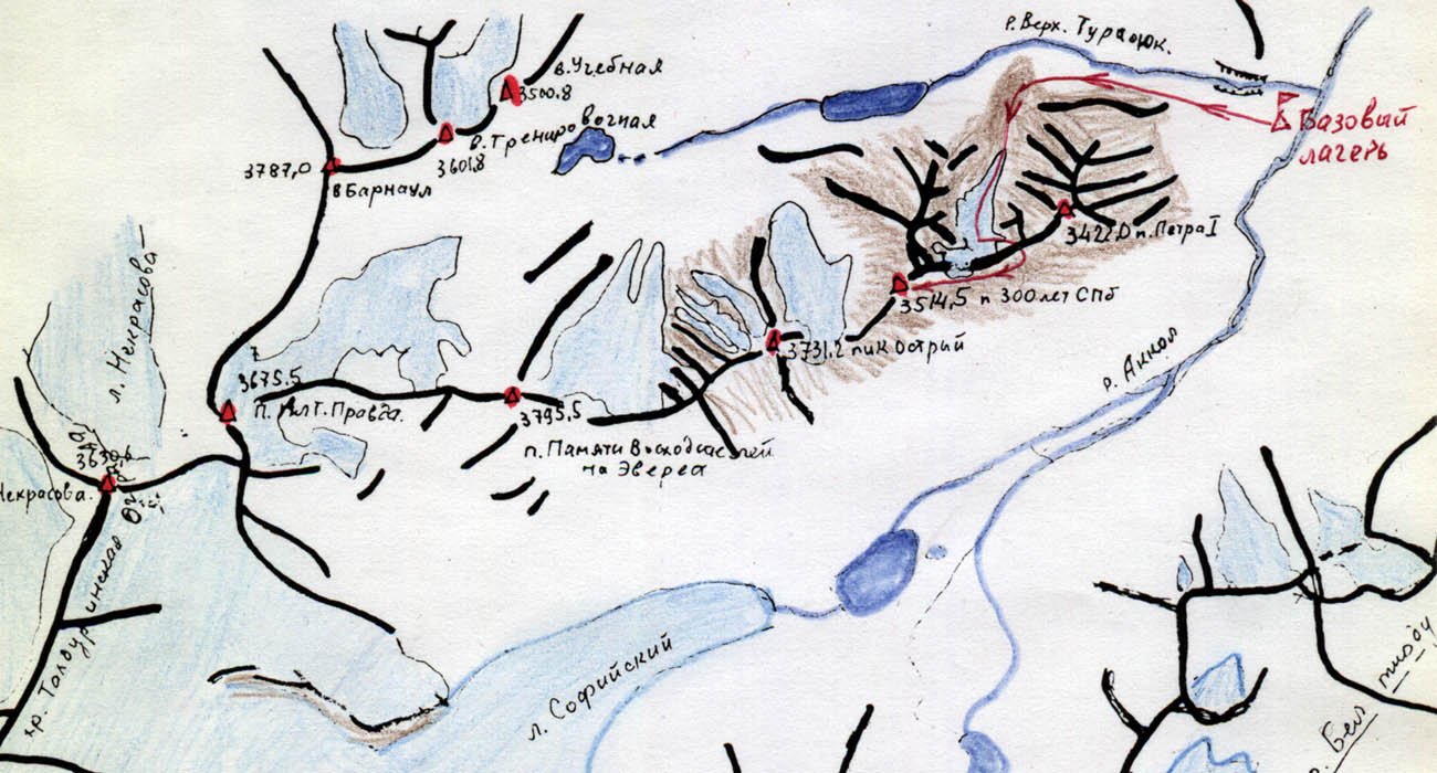 Покорение гор начинается задолго до того, как альпинисты оказываются у их подножия. Сначала изучают всевозможные карты, фотоснимки, выбирают лучшие маршруты. Идея совершить восхождения на непокоренные алтайские вершины, чтобы назвать их в честь нашего города, пришла в голову Германа Андреева еще два года назад, когда он начал писать книгу о выдающихся петербуржцах-альпинистах.