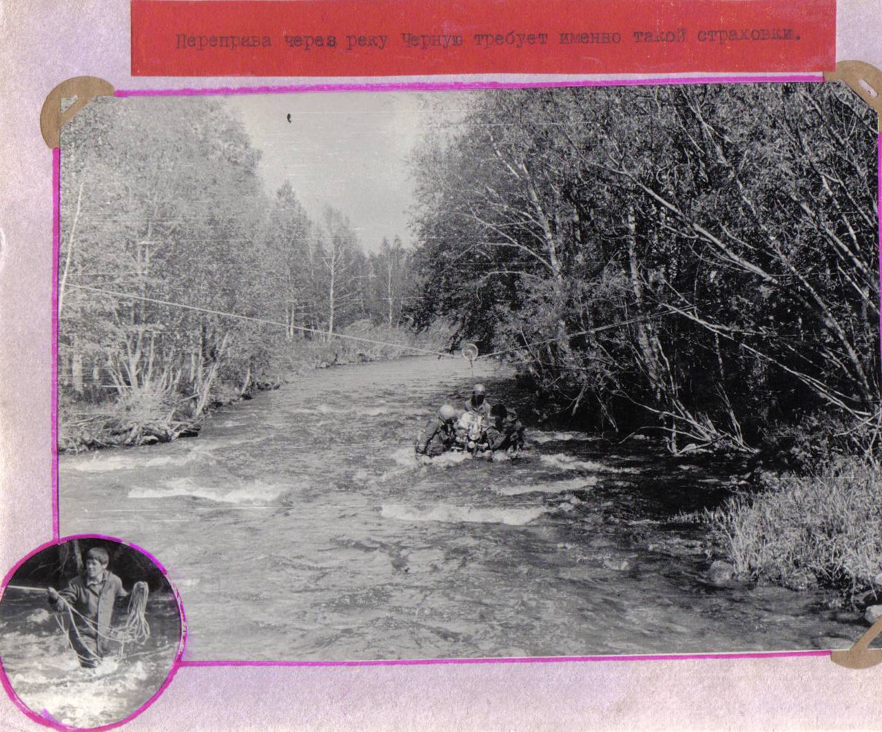 Выручает двойной блок, который мы везем для штурма перевала Узун-Хем. Натягиваем две веревки между березами, растущими на противоположных берегах, пускаем по ним блок. Закрепляем первый мотоцикл и с обрыва в воду. Упругая струя ударила в машину, накрыла ее. Канаты зазвенели. Облепив со всех сторон мотоцикл, удачно переправляемся.