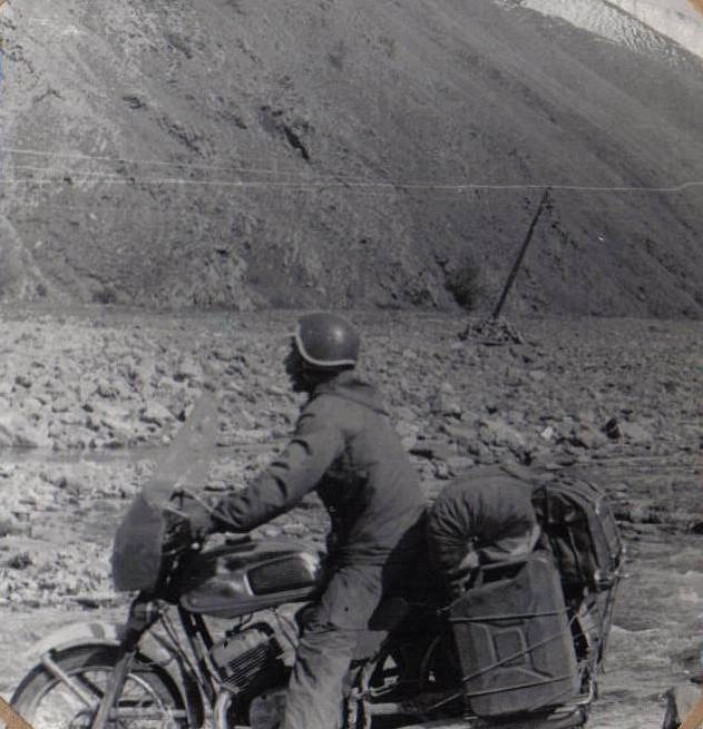 А денек то выдался отличный! Пожалуй, это первый по настоящему жаркий день в высокогорной части маршрута. Со всех сторон потянулись к Барлыку веселые ручейки - притоки. С каждым километром река становится все полноводней. Вода настолько холодна, что не выдерживаешь в ней и полминуты. Тропа, прыгая по камням, петляет с одного берега на другой, прижимаясь к скалам. Броды следуют один за другим. На очередном - перетаскиваем четыре мотоцикла. На последний сил уже нет, ноги совсем окоченели от ледяной воды и мы просим Раиса подождать немного. Видя как нам нелегко, он молча сел за руль. Мы в это время согревали ноги и ничего не увидели. К действительности нас вернул рев двигателя. Поднимая столб брызг, мотоцикл пытался с разгона пройти брод. Не успели мы и глазом моргнуть, как «Ява» начала стремительно удаляться, кувыркаясь на порогах реки. «Снимай!»: кричу я нашему кинооператору — Наталье Пантыкиной. Так оказался в фильме этот эпизод - бегущие на помощь по острым камням босоногие мототуристы и удаляющаяся в бурунах «Ява». Около сотни метров промчала на себе бешеная река нашего незадачливого водителя…