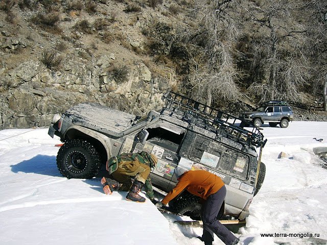 Наши сегодняшние «средства сплава» для зимней горной реки выглядели тоже не хило: укороченный «Сафарик», LC-80, LC-105 и УАЗик – все машины, естественно, подготовлены к самому жестокому бездорожью.